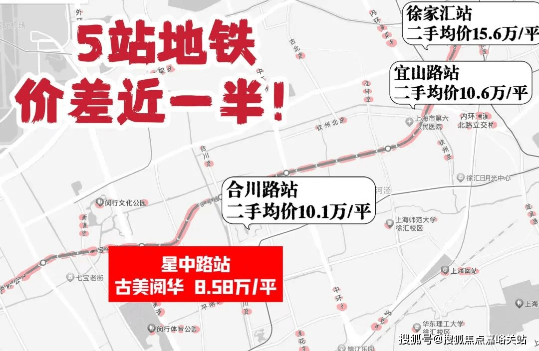 接下来,我们来谈谈配套设备的完美程度。取张江附近的唐镇、川沙分歧,虽然房价曾经上涨,但那里的资本配套和城市界面仍需进一步提拔。比拟之下,古美的交通、贸易设备,以及医疗、教育和生态等各方面都达到了极高的程度,最初,以地铁9号线为基准,徐家汇坐的二手房均价达到15。6万/㎡,宜山坐为10。6万/㎡,合川坐大约是10。1万/㎡。