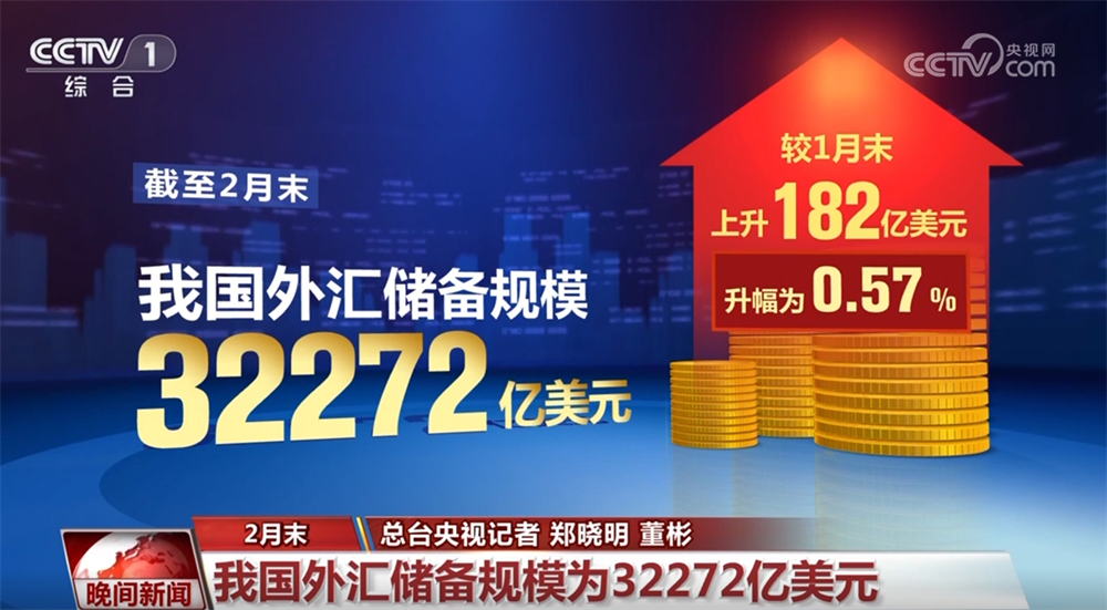 国度外汇办理局最新数据显示,截至2月末,我国外汇储蓄规模为32272亿美元,较1月末上升182亿美元,升幅为0。57%,外汇储蓄规模连结根基不变。