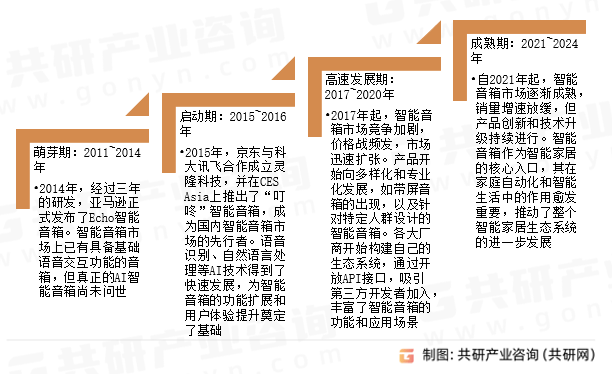 AI智能音箱行业能够分为三个阶段,此中高速成长期(2017-2020年),带屏音箱的呈现为用户供给了更丰硕的视觉互动体验,而针对特定人群如儿童和白叟设想的智能音箱则满脚了分歧用户群体的个性化需求;成熟期(2021年至今),市场从逃求快速增加转向精细化运营,厂商通过手艺立异和生态扶植来巩固市场地位。