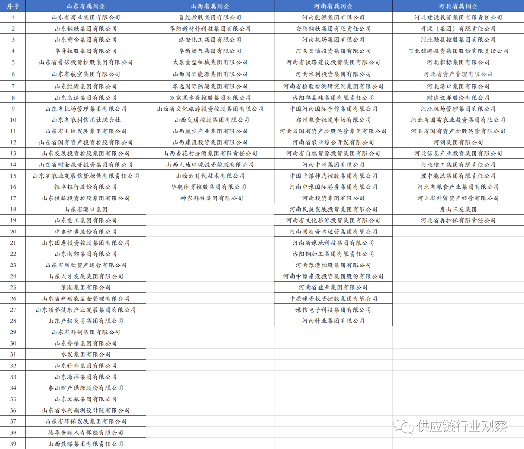 省属国企凡是正在区域内储蓄积累最优良的财产资本、金融资本和“行政”资本,此是开展供应链金融适宜的企业类型之一。外行业分布上看,省属国企次要涵盖金融、建工、交通根本设备投资扶植(高速公、轨道交通、铁扶植)、商业买卖(产权买卖、集中采购等)、物流根本设备(如机场、口岸)、矿产资本、林业资本、高端制制等,具有丰硕的供应链金融开展的场景。江山四省指河南、、山东、山西。这四个省,又被称为菜园子、气罐子、粮坛子、矿坑子。因各类资本取工农业资本不婚配,而被网友以“江山四省”自嘲之。但正在供应链金融范畴,我们认为这四个省的国企是走正在了全国相对前列的。以至正在政策、专营机构设置、平台扶植、产物立异等方面,四省的某些做法遥遥领先。按照各地国资委披露的监管企业名录,江山四省共有省属国企103家,数量上占全国比沉的16%摆布。属国企38家、山西省属国企18家,河南28家,19家。具体名录如下,下表山西焦煤应为山西省属国企: