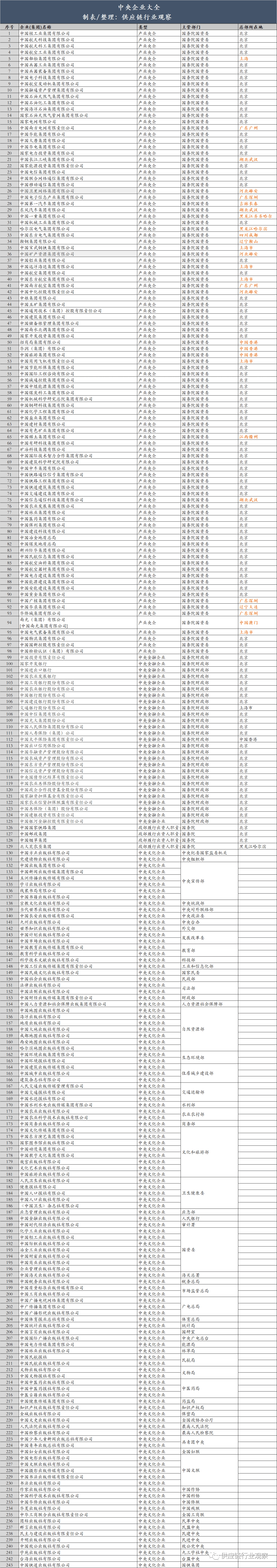 我国目前各类央企共243家,此中有列入国务院国资委央企名录的央企98家、列入财务部地方企业名录的央企145家。这些央企和国企正在2022年的停业收入是82。6万亿,净利润是4。32万亿,上缴税收5。93万亿。约有员工3390万。4月3日,易华录发布通知布告暗示公司收到现实节制人中国华录集团无限公司(以下简称华录集团)通知,华录集团正正在取中国电子科技集团无限公司(以下简称中国电科)规画沉组事项,华录集团拟整合进入中国电科。华录集团取中国电子科技集团整合后,国务院国资委监管的地方企业数量或将由现正在的98家削减为97家。排名1-53的为副部级央企。前53家地方企业的董事长、党委(党组)、总司理的人选由地方局常委会研究决定,这取一般副部长级干部的任免权限不异,因而被认为相当于副部级干部。所以,前53户正在报道中被称为中管企业,可是正在地方发文中,一般称为部门国有主要企业。除前53家央企,其余央企的代表人(大都是董事长)须报国务院党组任前存案同意。其监管由国务院国资委企业带领人员办理二局(简称“企干二局”)担任。前1-10为涉军工央企,别离为:中国核工业集团、中国航天科技集团、中国航天科工集团、中国航空工业集团、中国船舶集团、中国刀兵工业集团、中国刀兵配备集团、中国电子科技集团、中国航空策动机集团、中国融通资产办理集团。第11-22为能源类央企,此中11-14为石油类央企,别离为中石油、中石化、中海油及国度石油天然气管网集团;15-22为两大电网(南方电网、国度电网)及六大发电集团(华能、大唐、华电、国电投、三峡和国度能源集团);23-27为通信及电子消息央企,别离为:中国电信、中国联通、中国挪动、中国卫星收集集团、中国电子消息财产集团;28-33为配备制制类央企,别离为:中国一汽、春风汽车、中国一沉集团、中国机械工业集团、电气集团、中国东方电气集团;34-37为矿产资产类央企,别离为:鞍钢、中国宝武、中国矿产资本集团、中国铝业集团;38-41为交通运输行业央企,中国近海海运集团、中国航空集团、中国东方航空和中国南方航空集团。42-43为涉农类央企,包罗中国中化和中粮。此外,包罗中国五矿集团、通用手艺集团、中建集团、中国南水北集结团、国投集团、招商局集团、华润集团、中国旅逛集团、中国商飞集团分属分歧业业。此外,正在这98家央企中,国务院国资委核准的以金融为从业的央企共3家,包罗中国五矿集团等。以房地产为从业的央企共16家。地方金融企业名录由财务部发布,目前共27家。地方金融企业共分地方办理带领人员的金融企业(以下简称中管金融企业)和其他地方金融企业。其他地方金融企业则为施行国有金融本钱办理相关轨制,由财务部代表国务院履行国有金融本钱出资人职责,纳入国有企业运营预算办理、担任组织实施年度绩效评价等工做。此中中管地方金融企业15家,别离为中国投资无限义务公司、三大政策性银行(国度开辟银行、中国进出口银行、中国农业成长银行)、五大国有贸易银行(工行、农行、中国银行、扶植银行、交通银行)、两大金控央企(中信集团、光大集团)及四大安全集团(中国人保、中国人寿、承平安全、中国出口信用安全集团)。其他地方金融企业12家,别离为四大资产办理公司(华融、长城、信达、东方)、中债登、中国农业再安全、中国政企合做投资基金股份无限公司、国度融资基金无限义务公司、国度农业信贷联盟无限义务公司、中国再安全(集团)股份无限公司、中国建银投资无限义务公司及中国银河金融控股无限义务公司。由国务院授权财务部履行出资人职责的企业共4家,别离为中国国度铁集团、中国邮政集团、中国烟草总公司、北大荒农垦集团无限公司。