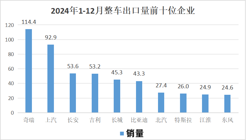 2024年,从增速上来看,比亚迪出口43。3万辆,同比增加71。8%;长安出口53。6万辆,同比增加49。6%;江淮出口24。9万辆,同比增加46。7%。